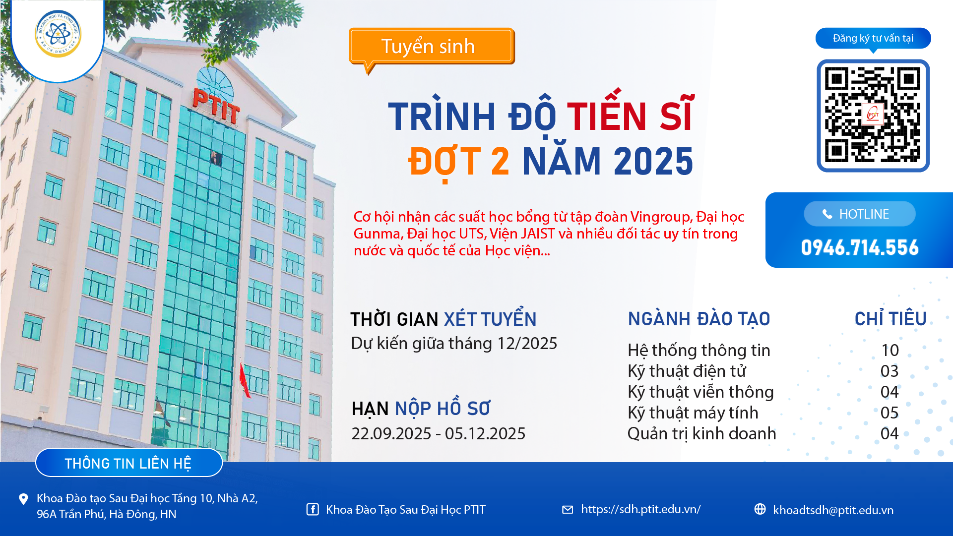 Thông báo tuyển sinh trình độ Tiến sĩ đợt 2 năm 2025